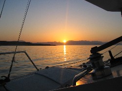 After another colorful sunset the full moon came up at 10 pm. The temperature stays at around 70 degrees F all night long and the air is so dry that you get absolutely no dew on the decks (C: a real treat and relief!). The moon is directly overhead and you can see the wave patterns in the sand below the boat. Wow!