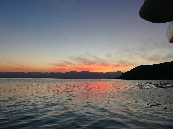 Garett: We lingered in Mejia Cove this morning as there was enough south wind to keep the bugs at bay. I went for my daily fishing expedition to the point next to the channel about 75 yards away, where the water really rushes through during tidal changes. Sometimes at the point it was a little tricky getting back into the cove as the water was rushing out, so I had to swim close to the rocks.